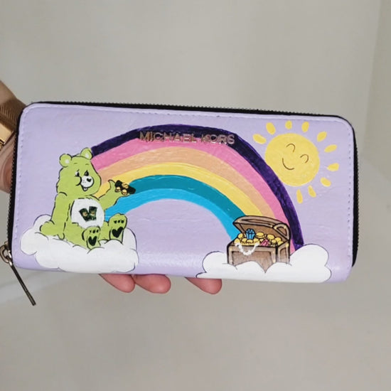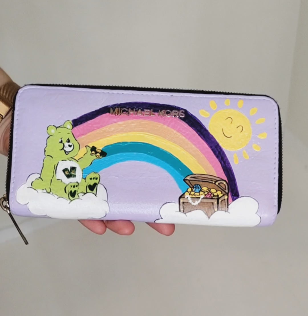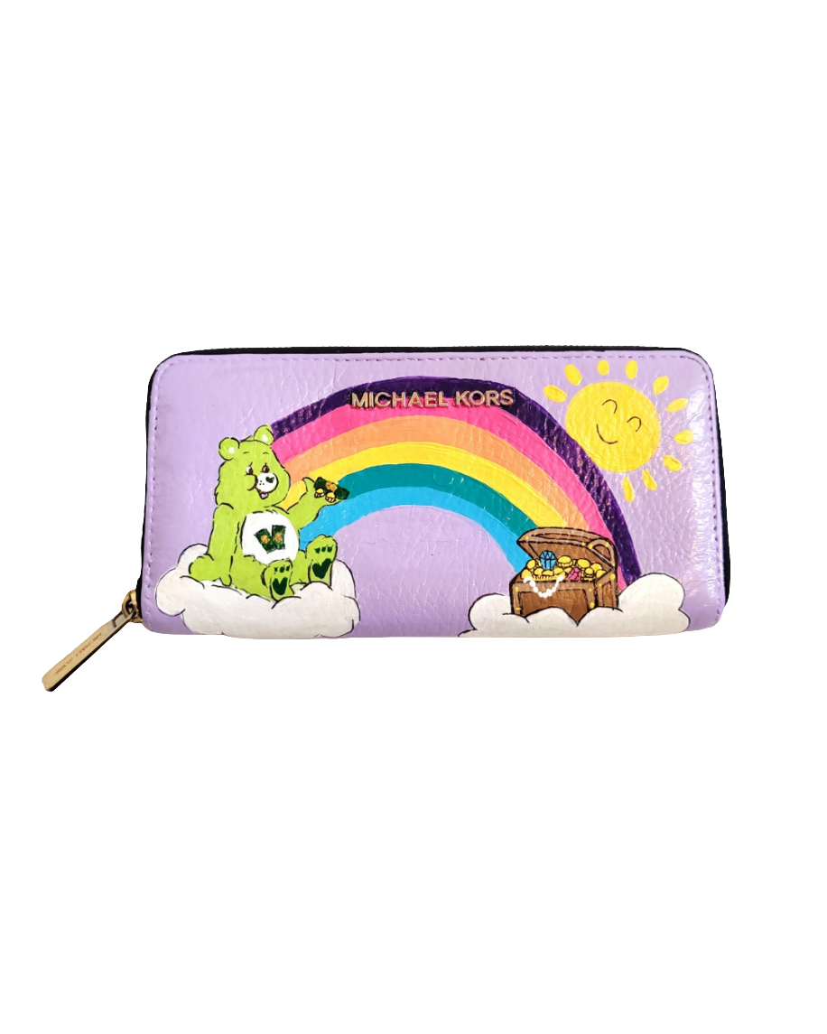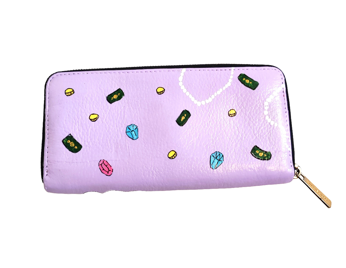 Käsinmaalattu lompakko. Lompakossa on tummansininen sisäosa. Merkki: Michael Kors, keinonahka. Lompakko on uniikki ja saatavilla vain 1 kpl.